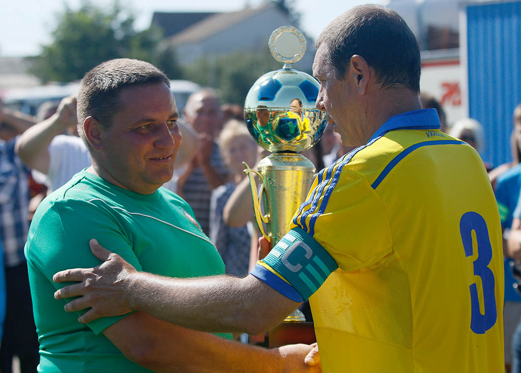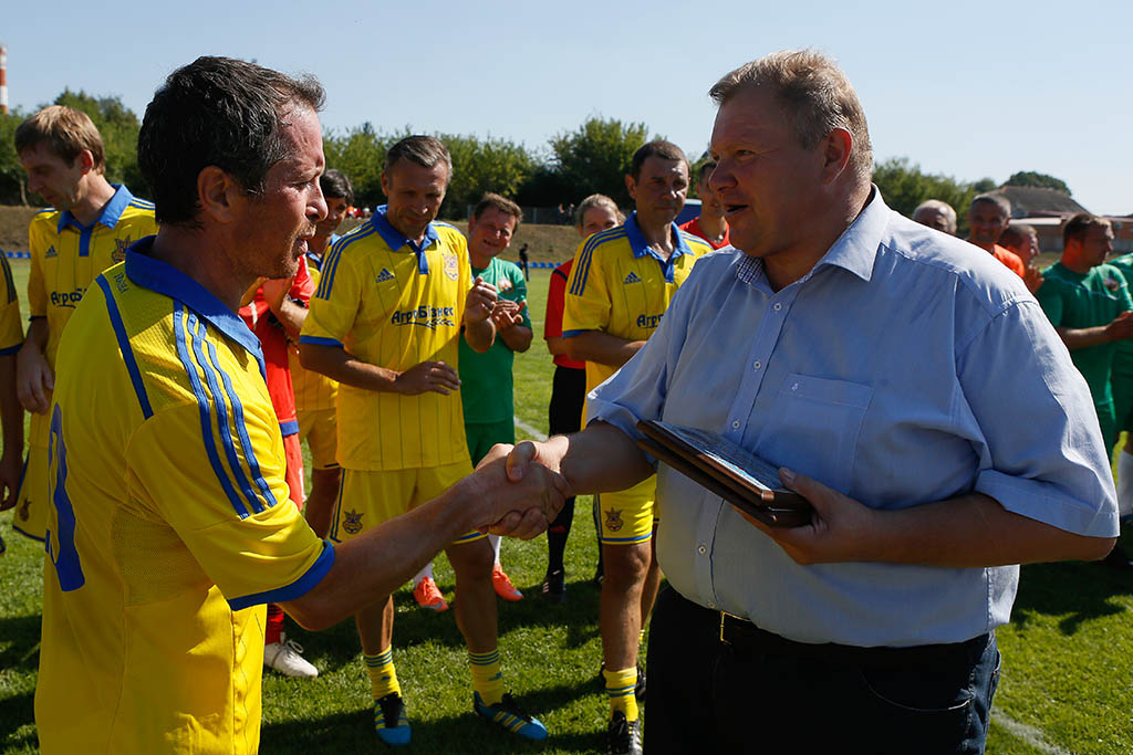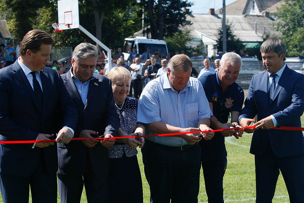 Как и подобает, всю эту красоту, а еще год назад жители села и мечтать не могли заниматься спортом в таких условиях, приехали открывать почетные гости - глава Киевской ОДА, глава Киевской областной федерации футбола Максим Мельничук, первый вице-президент ФФУ Вадим Костюченко, национальная сборная Украины среди ветеранов во главе с тренером Анатолием Демьяненко. Сказали слова благодарности и отдали должное людям, развивающим в регионах футбольную инфраструктуру, перерезали красную ленточку, а после - первый матч на новом стадионе, с участием лучших футболистов Украины прошлых лет. Против «звезд» вышли ветераны Тетиевского района.