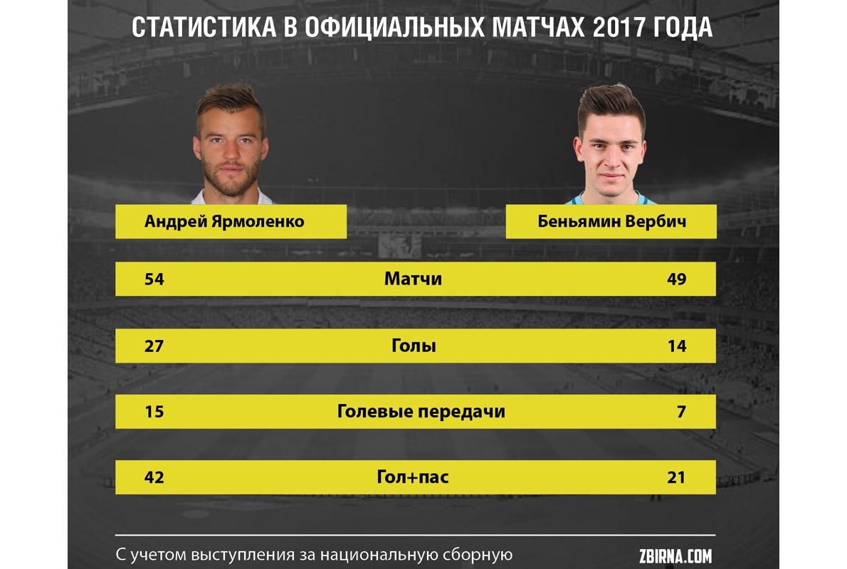 Любопытно, что Вербич, как и Ярмоленко, в минувшем отборочном цикле ЧМ-2018 провел все 10 матчей — и тоже не вышел даже в плей-офф. В национальной команде статистика словенца выглядит приблизительно так же, как и на клубном уровне. Лучшему бомбардиру сборной Украины словенец значительно уступает в количестве острых передач, но превосходит его в обводках и отборах мяча. В общем, будет интересно…