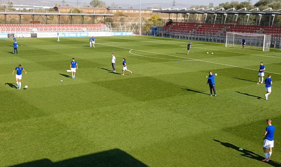 "Динамо" U-19 разминается на стадионе ФФМ перед матчем Юношеской лиги УЕФА со "Шкендией".