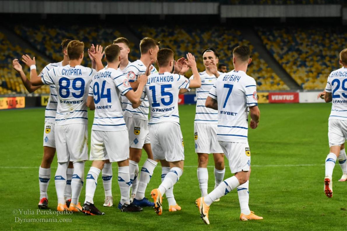 "Динамо": 1. Бущан - 94. Кендзера, 25. Забарный, 16. Миколенко, 20. Караваев - 5. Сидорчук, 10. Шапаренко, 29. Буяльский, 22. Родригес, 14. де Пена - 89. Супряга