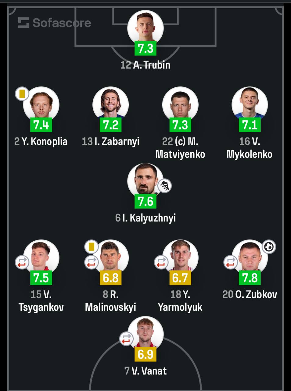 З великим відривом кращим гравцем поєдинку тут вважають Олексія Гуцуляка, котрий оформив гол+пас та отримав оцінку 9,0.