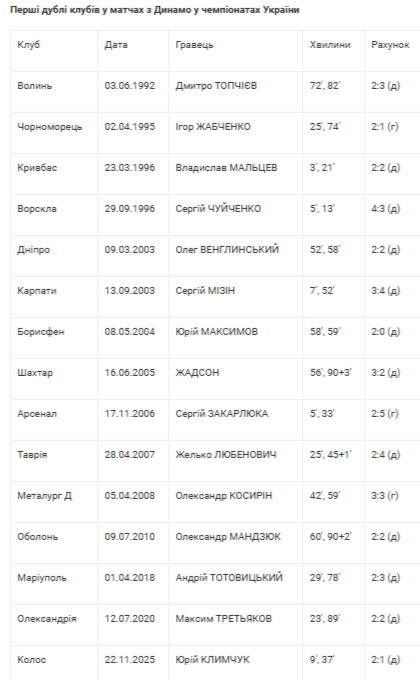 Тим часом його дубль виявився до всього іншого ювілейним - 30-м у динамівські ворота. Найчастіше "вистрілювали" дуплетом футболісти "Шахтаря" – 6 разів, "Дніпра" та "Чорноморця" – по 4.