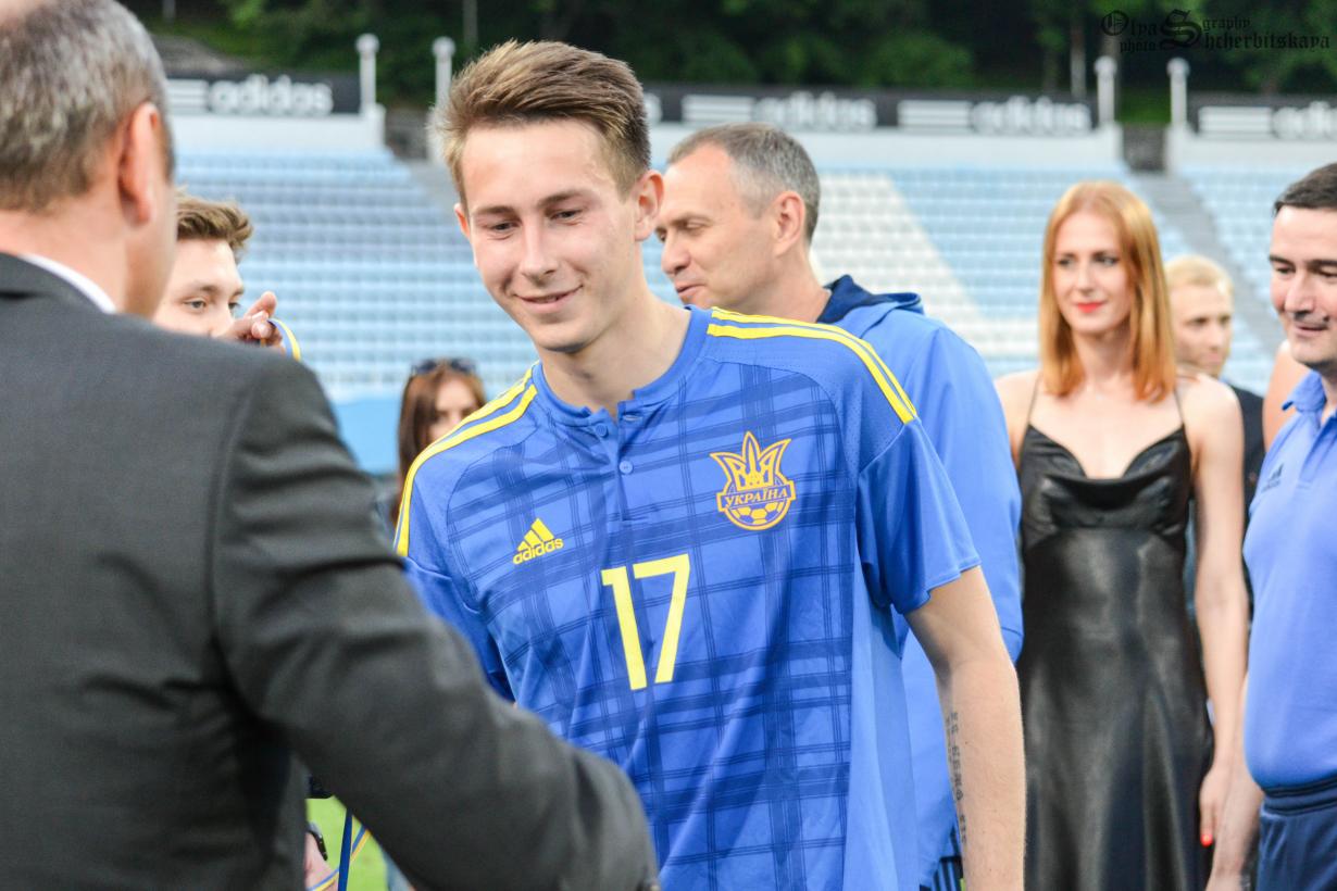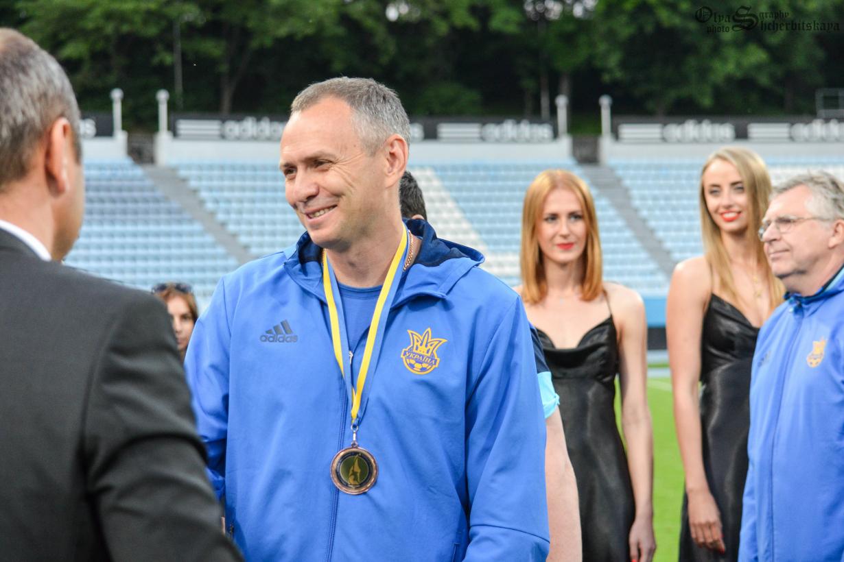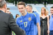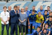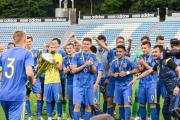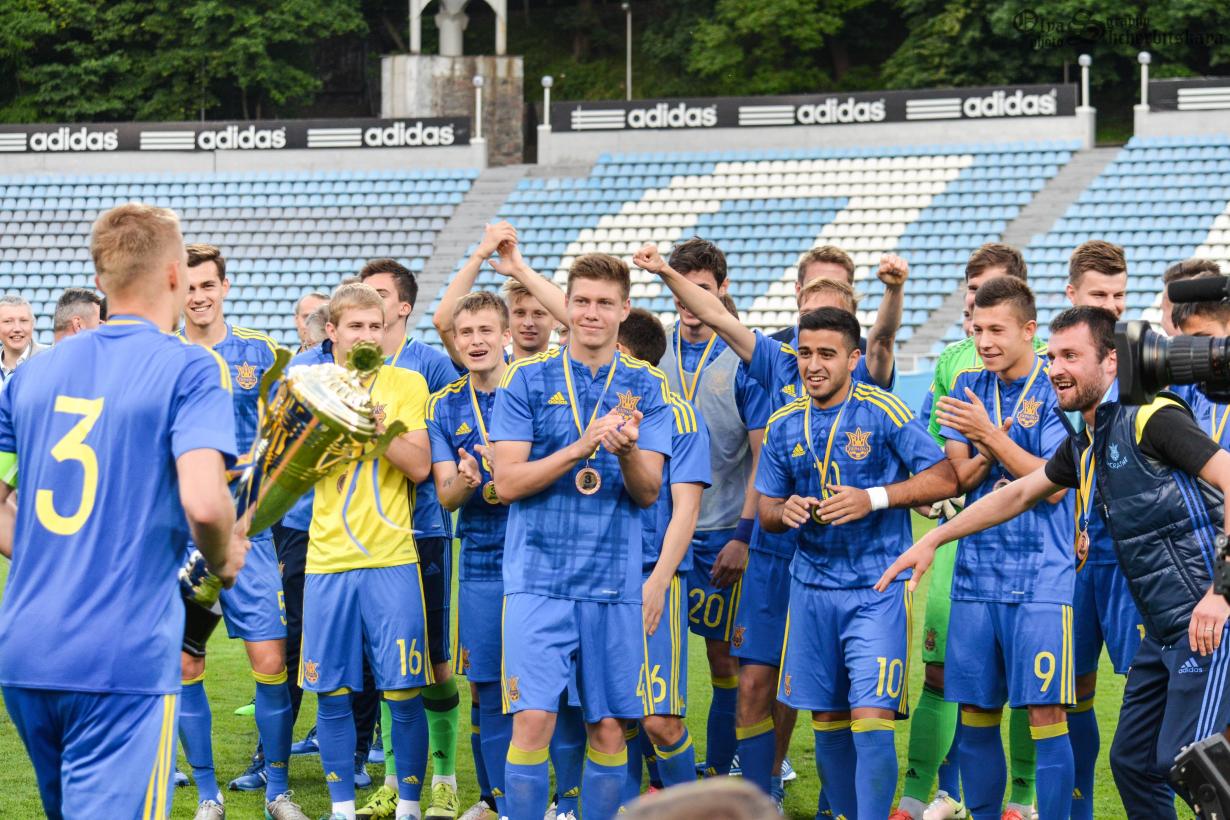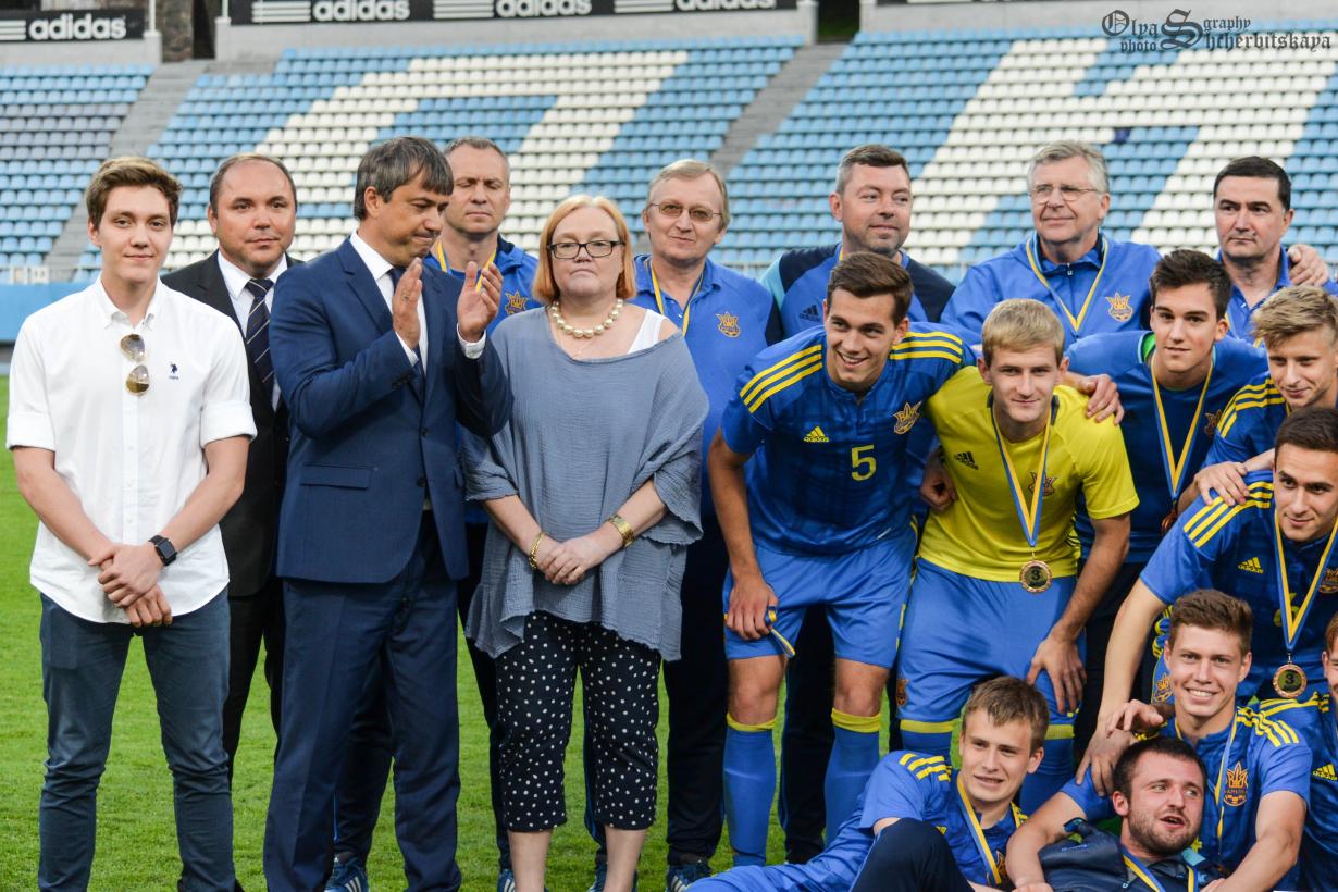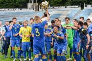 Молодежная сборая Украины празднует завоевание бронзовых медалей на момориале Лобановского