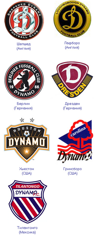 Оно уже и в Африке! «Дайна́моз» (англ. Dynamos Football Club) — клуб из Зимбабве, базируется в городе Хараре. «Пауэр Дайнамоз» (англ. Power Dynamos Football Club) — замбийский футбольный клуб из Китве.