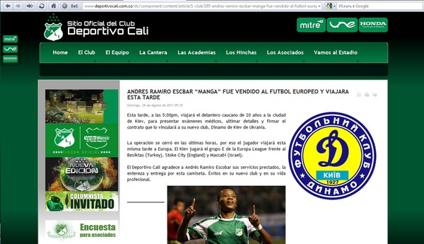Esta tarde, a las 5:00pm, viajará el delantero caucano de 20 años a la ciudad de Kiev, para presentar exámenes médicos, ultimar detalles y firmar el contrato que lo vinculará a su nuevo club, Dinamo de Kiev de Ukrania.
