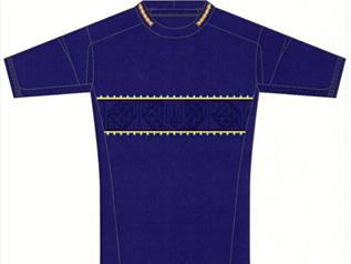 "Выездные" футболки будут сине-фиолетового цвета с желтой окантовкой.