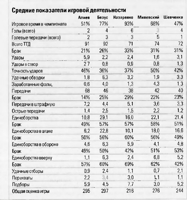 Позвольте с Вами н е согласиться! Если много отборов и перехватов, это еще не означает, что фуболитст более подходит на опорника. Нападающий умеющий хорошо читать игру способен добиться таких статистических данных (хотя статистика вешь интересная))))). Посмотрите на игру Реброва, если не сложно, он из малейшей оплошности защитников мог в статистику гол записать, не говоря уже об отборе. К стати, в то, что Блохин поставил опорником Безуса только для того чтобы показать какой он нехороший)), так скажем, не врею. Не по королевски это). Мне кажется Блохин в этом все правильно делает. Ему нужен результат и, хотя он самоуверенная еденица в футболе, к него сетко просматривабтся цели, а не только руки трясутся, думаю вы поняли о чем я)
