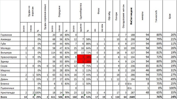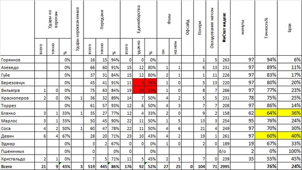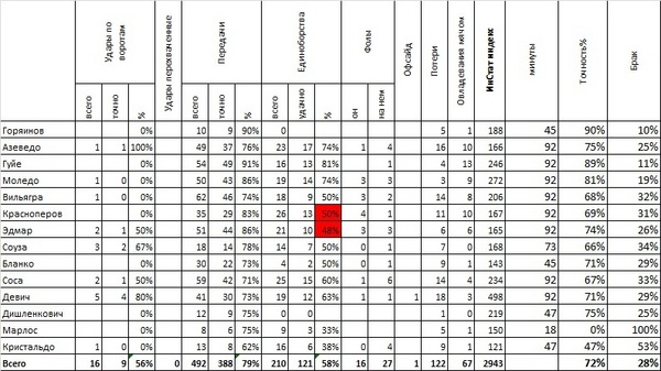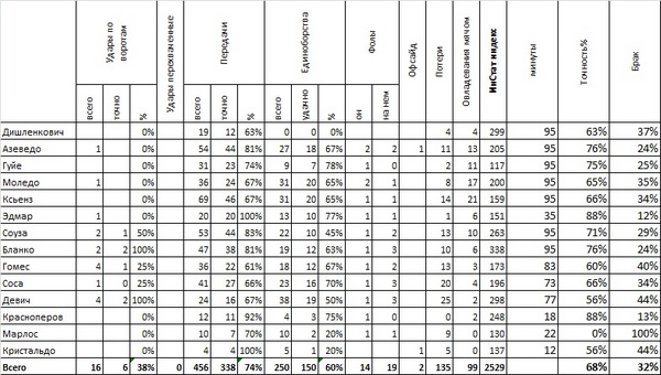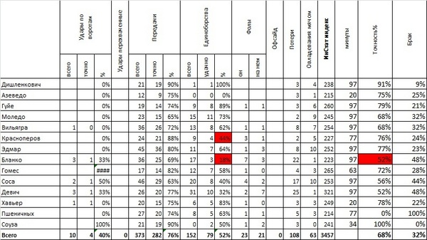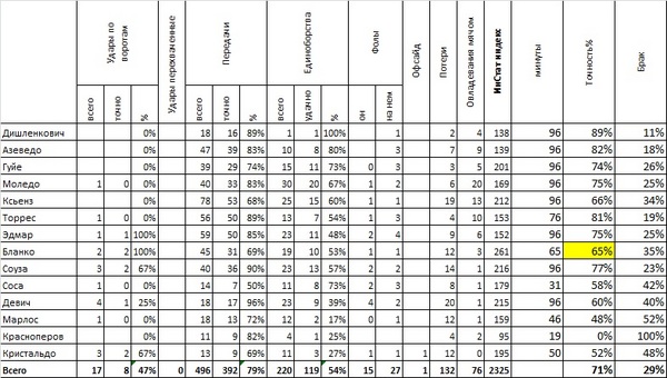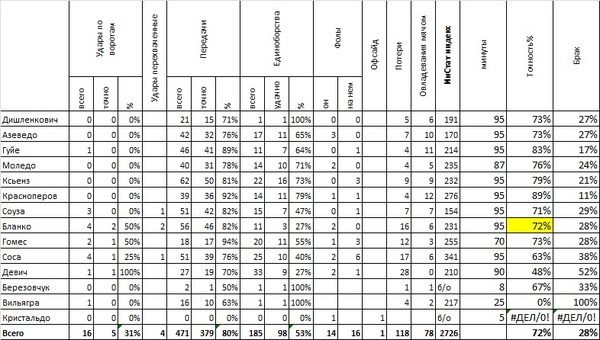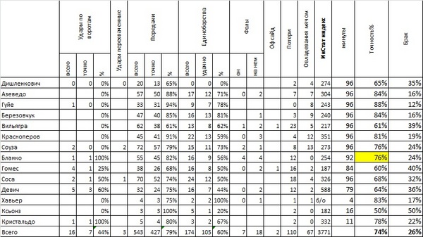 Также хотелось бы отметить цифры Бланко. Много брака и потерь, а потому, я думаю что в матче против Динамо скорее всего выйдет Хавьер (уже набирающий кондиции).