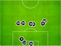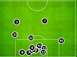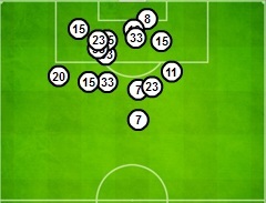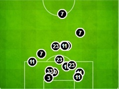 Обратите внимание, что независимо от соперника, Металлист очень часто бьет уже внтри пределов штрафной. Исключением является разве что матч с Севастополем.