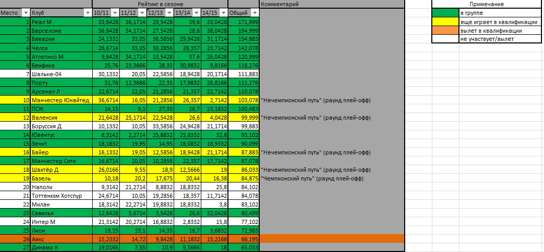 Резюмируем: в 4-й корзине однозначно будут Боруссия и Вольфсбург. И почти наверняка либо Рома, либо Монако. Это из восьми команд. А значит, даже 4-я корзина в этом году будет сильна, как никогда (на секундочку, вице-чемпионы Германии и Италии, а также бронзовые призеры Франции и Германии).