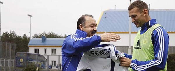 Перед началом тренировки Андрею Шевченко, которому сегодня исполнилось 34 года вручили букет розовых роз, а позже Газзаев от лица команды подарил ему футболку с поздравительными надписями.