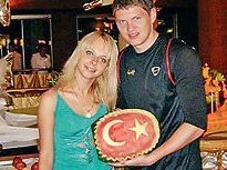 Вчера «динамовцы» на базе в Конче-Заспе поздравили с днем рождения своего вице-капитана Тараса Михалика. Ему исполнилось 27 лет, и в этот день он получил от команды традиционный подарок – мяч с автографами всех игроков. Любимая жена Валерия тоже подготовила Тарасу сюрпризы: «Жена преподнесла самый оригинальный подарок. Утром она подарила мне торт в форме футболки киевского «Динамо» с номером 17. И еще кучу всего. Было очень приятно. Торт, конечно, до тренировки не успел попробовать».