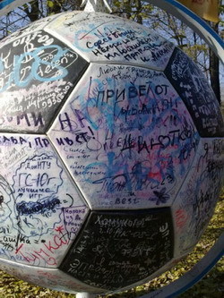 Совсем недавно в донецком парке кованных фигур установили памятный знак украинско-польской дружбы в предстоящем Евро-2012. Вращающийся мяч на постаменте, увенчанный флагами двух стран уже не вращается и полностью изгажен маркерами, помадами и острыми предметами.