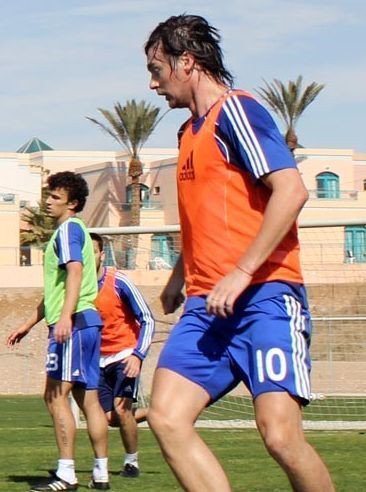 Первая тренировка понедельника прошла в непринужденной обстановке. Учитывая, что на следующий день будет игра, сперва за дело взялся Пинколини, проведя почти получасовую разминку. Затем настало время занятия по тактике. Игроки разделились на две группы. С нападающими на одной половине поля работал Юрий Семин, с игроками оборонительного плана Олег Лужный. Тренеры требовали четкого выполнения тактических схем, отрабатывали контроль мяча, перемещения по полю, переход из защиты в атаку и многое другое. После этого Юрий Семин подозвал к себе бразильцев Бетао, Маграо, Данило Силву и македонца Попова, объяснив им один из тактических нюансов. В качестве переводчика для соотечественников выступал Бетао.