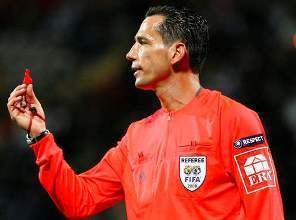 Португалец? Будет свистеть каждые десять секунд и ещё пару пеналей и красных карточек даст:)
