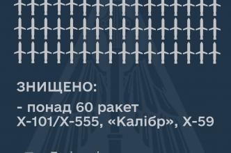 Сили ППО збили 60 з більш ніж 70 ракет під час масованої атаки
