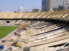 Он также напомнил о том, что Киевсовет дал гарантии УЕФА в том, что до 2012 г. в столице будет построен новый стадион. Глава ФФУ заявлял, что рассматривались два места строительства - на улице Полесская, 6, где расположены склады Минобороны, и на улице Глушкова, 6 - на территории выставочного центра « Экспо-Украина».