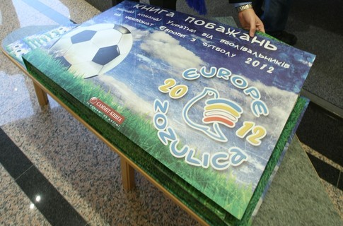На открытой тренировке Олега Блохина в конференц-зале базы в Конча-Заспе ждал сюрприз — книга пожеланий от болельщиков к Евро-2012. В ней 2012 открыток с пожеланиями самых разных людей, в том числе от иностранцев. Размер книги, как у поля "Олимпийского", — 105 на 68, только в сантиметрах.