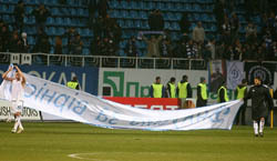 Огромный десятиметровый баннер в надписью «Дякуємо за вірність» вынесли на поле игроки «Динамо» по окончанию завершающего матча 2011 года против «Маккаби».