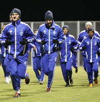 В тренировке приняли участие Шовковский, Коваль, Бойко, Юссуф, Хачериди, Мехмеди, Гармаш, Вукоевич, Макаренко, Аруна, Нинкович, Рыбалка, Бертольо, Алиев, Ярмоленко, Милевский, Эскобар и Кравец. Отсутствовали Шевченко и Гусев. «У Андрея небольшое повреждение, он работает в тренажерном зале. А у Олега простудное заболевание, по всей видимости, к тренировкам он приступит только в Марбелье», - объяснил Юрий Семин. Также продолжают залечивать прошлогодние травмы Попов, Михалик, Богуш и Калитвинцев.