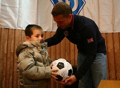 Наконец, в зал под дружные аплодисменты прошли гости – представители прошлого (Ребров) и нынешнего (Коваль) поколений «Динамо». Ребята очень тепло встретили динамовцев, а в честь звездного нападающего «Динамо» 90-х годов прошлого столетия даже продекламировали кричалку «Наш герой – Сергей Ребров!».