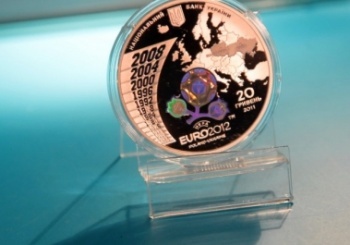С 1 марта в Украине вводят в обращение памятную монету обыкновенного качества «Финальный турнир чемпионата Европы по футболу 2012 года» номиналом 1 гривня. Как сообщили в пресс-службе Национального банка Украины, монета тиражом 5 миллионов экземпляров является официально лицензированной продукцией УЕФА.