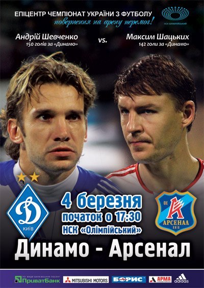 У Андрея Шевченко своя миссия. Отправив мяч в сетку ворот канониров, Андрей может стать лучшим бомбардиром всех времен среди игроков, обученных футболу в Украине и бывшем СССР по количеству мячей забитых на уровне высших лиг национальных чемпионатов. Пока на счету семерки динамовцев 217 голов, ровно столько же, сколько у его нынешнего наставника в сборной Украины Олега Блохина.