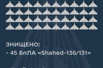 безпілотниками-камікадзе іранського виробництва Shahed-131/136, з них 45