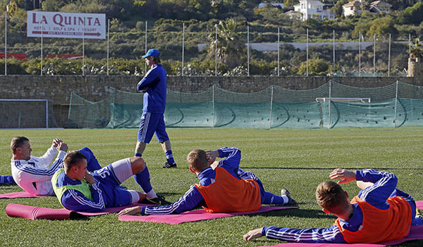 На единственном в этот день занятии, состоявшемся вечером, игроки, которые провели на поле больше времени в дебютном поединке на Marbella Cup-2013, а таких оказалось семеро – Тайво, Вида, Цуриков, Сидорчук, Михалик, Люлька и Кравец, – ограничились пробежкой вокруг тренировочного центра, после чего были предоставлены сами себе, в основном проводя время за горячо любимой на сборах игрой в теннис-бол.