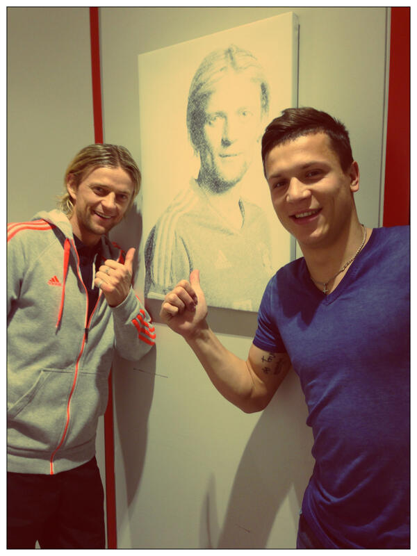Фотографии в свидетельство этого выложил на своей странице в Twitter сам Тимощук с подписью: "Два украинца в Мюнхене".