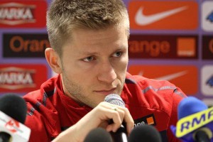 Польскую сторону перед домашним отборочным матчем ЧМ-2014 против сборной Украины вместе с главным тренером представлял капитан "кадры" Якуб Блащиковски.
