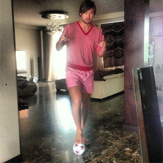 Непоседа Артем Милевский, который сейчас занимается поиском нового клуба, поддерживапет форму в домашей обстановке.
