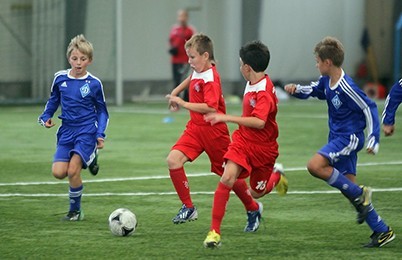 Накануне матча квалификации Лиги Европы между «Динамо» и «Актобе» товарищескую встречу провели десятилетние воспитанники футбольных школ обеих клубов.