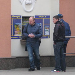 Завидев пожилую женщину, коренастый мужчина в черной куртке вручил ей купюру в 200 гривен и подробно рассказал, какие билеты нужно купить. Когда старушка вернулась с задания, в качестве благодарности ей вручили 20 гривен. Так что те, кто билеты в кассах купить не успел, могут поинтересоваться заветным пропуском перед матчем, но платить, скорее всего, придется в несколько раз больше номинала.