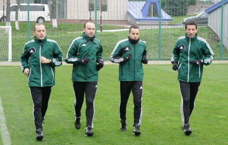 Арбітри були у чудовому настрої, пожартували про погоду в Києві, порівнявши її з турецькою, а потім перейшли безпосередньо до виконання тренувальних вправ.