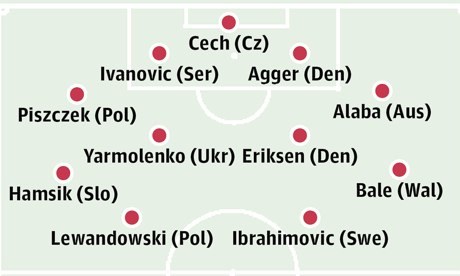 Ярмола и Ибрагимович в одной команде? Бред какой-то. Ибрагимович лишь только вчера две плюхи Реалу положил. А Ярмола Заре забить не в состоянии. Ибра с Ярмолой как слон с тараканом. И Роберт Левандовски почти то же самое. С похмелья что ли состав составляли?