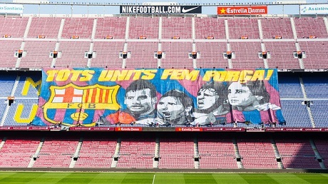 Представитель официального фан-клуба «Барселоны» в Польше посетили домашний стадион каталонцев «Камп Ноу» и вывесили на нем свой баннер.
