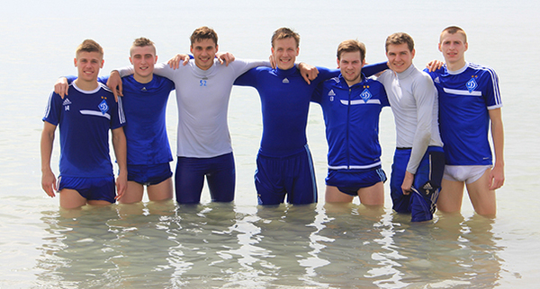 После тренировочного занятия большая часть ребят направилась прямиком в корпус, а вратари Георгий Бущан и Евгений Волынец, защитники Дмитрий Рыжук, Виталийс Ягодинскис, Иван Трубочкин и Валерий Скидан, а также нападающий Вячеслав Панфилов, отдали предпочтение морю.