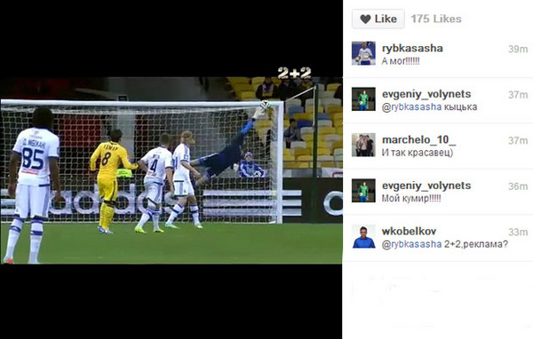 Голкипер «Динамо» Александр Рыбка после матча с «Металлистом» выложил в Instagram скриншот гола Эдмара, чтобы наочно продемонстрировать, сколько ему не хватило, дабы потянуть удар натурализованного бразильца.