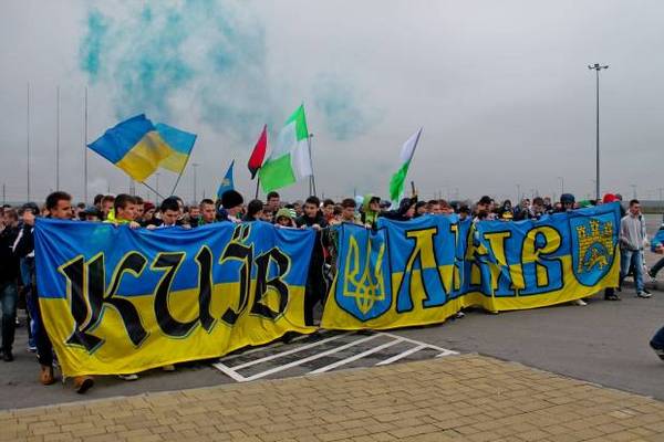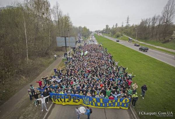 Фанаты прошли от "Арены Львов" до стадиона "Украина", где позже и состоялся матч.