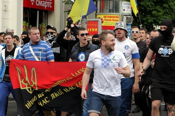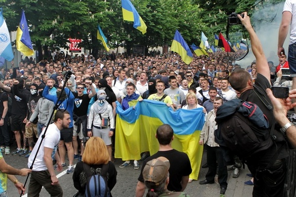 Ультрас "Днепра" и "Карпат" прошли маршем в вышиванках (+ФОТО, ВИДЕО)