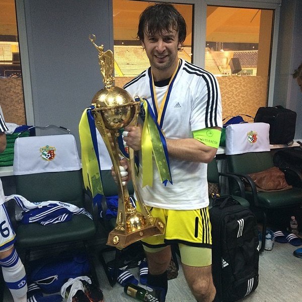 Капитан киевского "Динамо" Александр Шовковский после победы над "Шахтером" (2:1) в финале Кубка Украины вышел из раздевалки одним из последних, появившись вместе с трофеем.