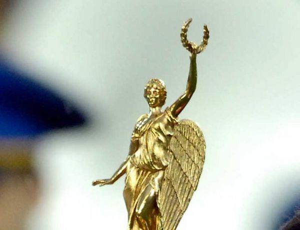 Во время вчерашней церемонии вручения приза, после победы «Динамо» над «Шахтером» в Полтаве, было четко видно, что внутри лаврового венка, который держит в руках богиня победы Ника, отсутствует эмблема Федерации футбола Украины – из ладони серебряной позолоченной фигурки торчат только «рожки» ветвей.