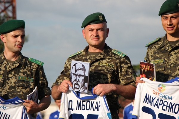 Перед матчем, футболисты и руководство города в лице Владимира Миколаенко вручили пограничникам, которые служат на Херсонщине, футболки игроков киевского «Динамо», в которых они победили в финале Кубка Украины «Шахтер».