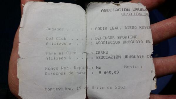 Клуб «Серро», в который перешел 17-летний Диего, в 2003 году перечислил «Дефенсор Спортинг» 840 уругвайских песо (27 евро), сообщает elEconomista.es.