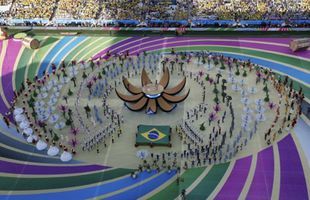 Сценарий церемонии открытия начавшегося на щедро рождаемой футбольных талантов земле, которая происходила в Сан-Паулу на «Арене Коринтианс», был строго ограничен хронометражем – 25 минут. Ведь перед первым матчем Бразилия – Хорватия надо дать время на подготовку поля после этой концертной части. Потому художественным руководителем и главным режиссером этого действа Дафной Корне из Бельгии все фрагменты представления были ужаты до минимума.