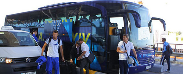 Сьогодні вранці у міжнародному аеропорту «Бориспіль» пасажири могли побачити цілу групу людей у динамівському екіпіруванні.