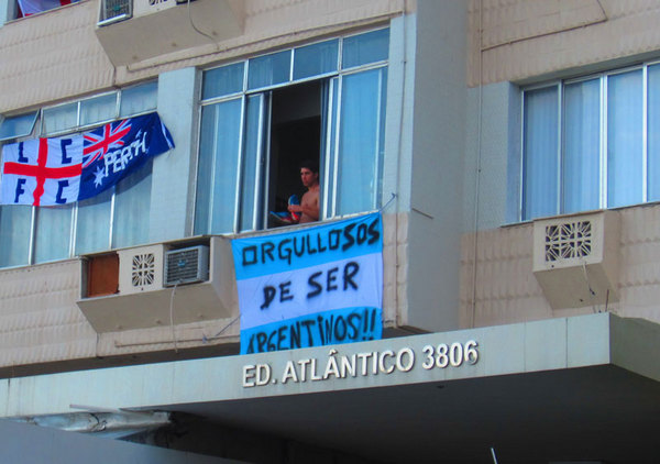 И, конечно, все напоминало о грядущем футболе. Так, например английские "цвета" мирно соседствовали с аргентинскими.