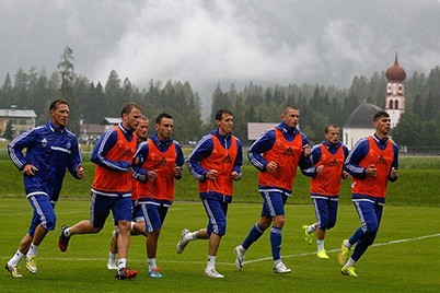 Погода в Тироле сейчас сама противоположность киевской, небо затянуло тучами, идут дожди. В профессиональных командах на такие капризы погоды обращать внимание не принято, главное правильно подобрать бутсы, чтобы комфортно чувствовать себя на мокром газоне.