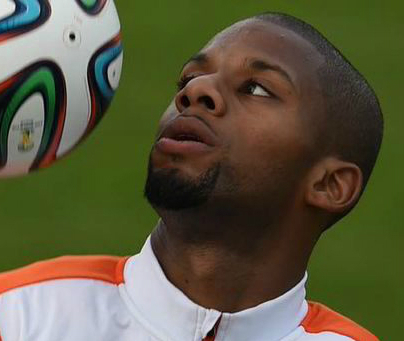 Динамовец Джермейн Ленс разминается во время полуфинального матча ЧМ-2014 между сборными Голландии и Аргентины